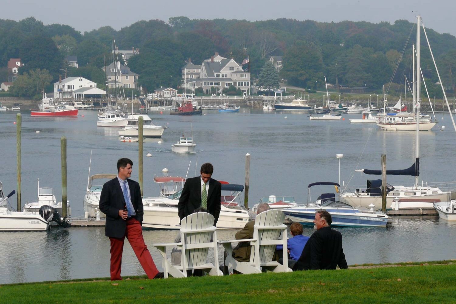 Our lovely coastal wedding venue has the most beautiful view of York Harbor and all its nautical activities; gleaming yachts and colorful lobster boats are just the beginning. Wedding ceremonies are held on the front lawn facing the Atlantic Ocean followed by cocktails. Dinner and dancing to follow in our restaurant with floor to ceiling windows and wrap around porches facing scenic York Harbor.